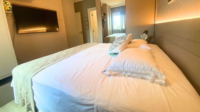 Sobre a Unidade: Este apartamento de 93m² privativos combina praticidade e conforto em cada detalhe. São 2 suítes amplas, 2 banheiros, living integrado, cozinha funcional, sacada com churrasqueira e 1 vaga de garagem. O imóvel conta ainda com ar-condicionado e armários embutidos, garantindo modernidade e praticidade para o novo morador.